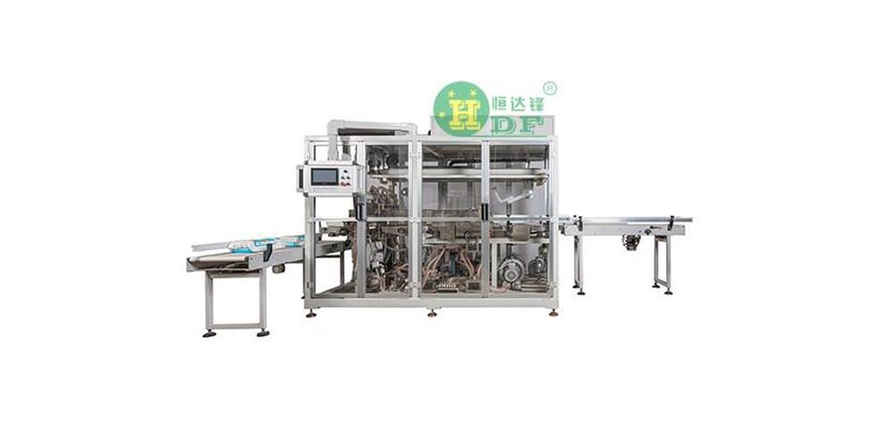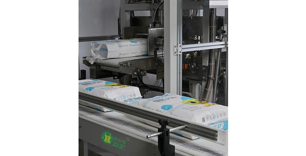 本機(jī)用于護(hù)理墊、嬰兒紙尿褲拉拉褲、成人紙尿褲等全自動(dòng)封口。本機(jī)采用信捷 PLC 程序控制,定位準(zhǔn)確,精確度高;自動(dòng)化程度高、操作簡(jiǎn)單,配有自動(dòng)吸入廢邊料裝置;高速封口,可連線堆垛、雙向出口;一鍵自動(dòng)調(diào)節(jié)通道寬窄、叉角、開袋參數(shù)。